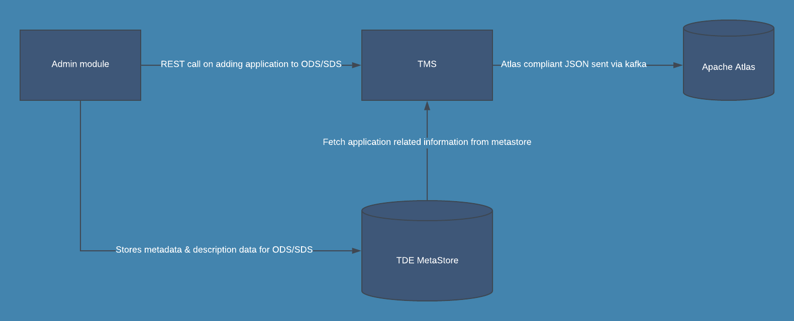 - Upon adding an application in Admin module, REST call is made to TMS for synchronisation of data dictionary and lineage with apache atlas.