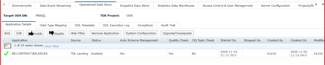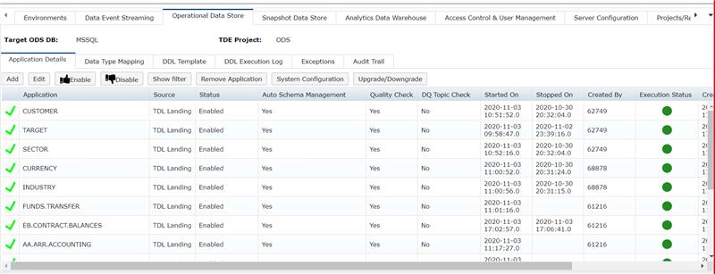 Adding application to ODS, creates a generic dataflow and upon clicking Enable it triggers ODS process, which starts processing events of all enabled applications in ODS.