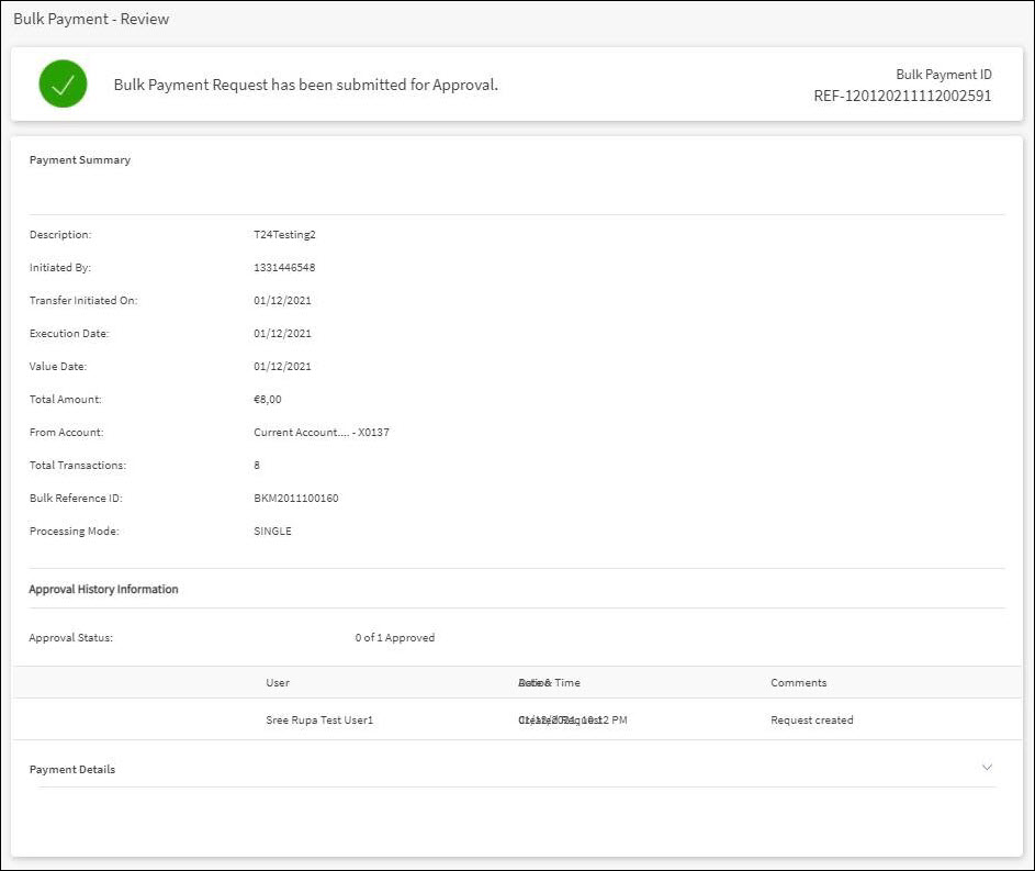 - Click Create Another Request to carry out another bulk payment request with the same template.