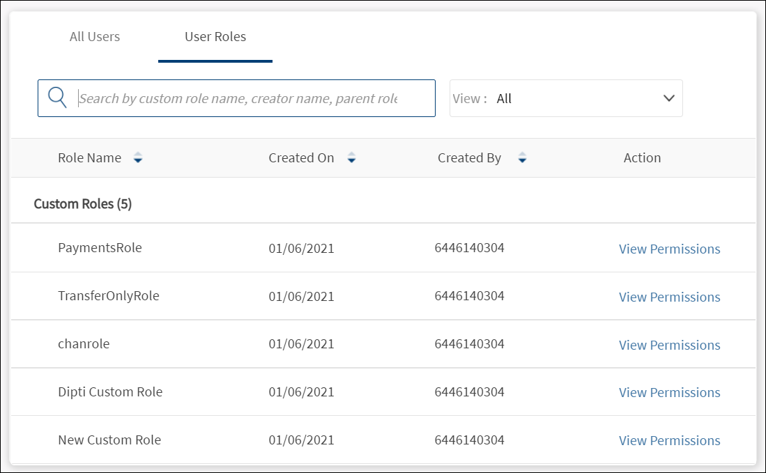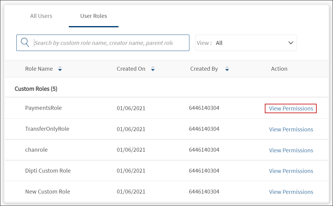 - Click View All Roles to navigate to the list of custom roles.