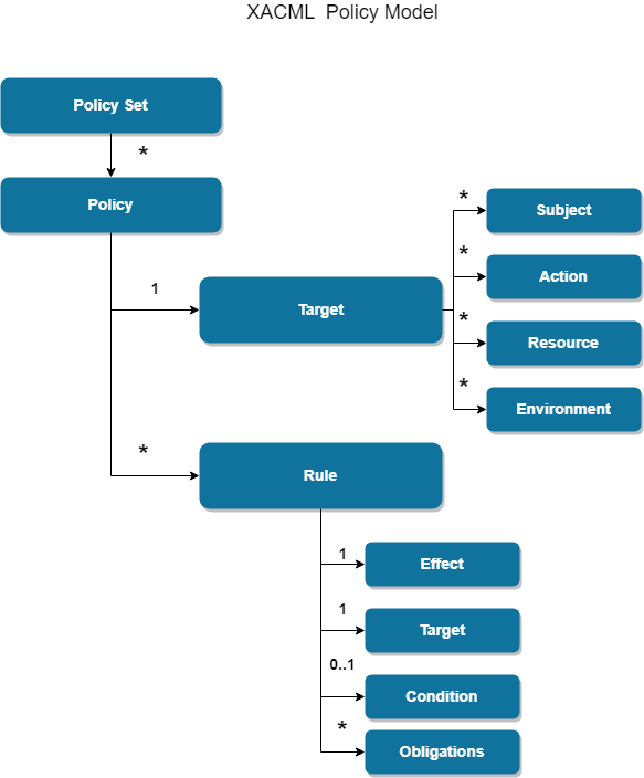The following image depicts a simplified XACML policy model.