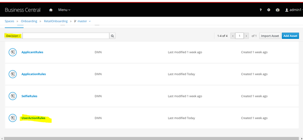 3. From the list of decision tables, select UserActionRules.