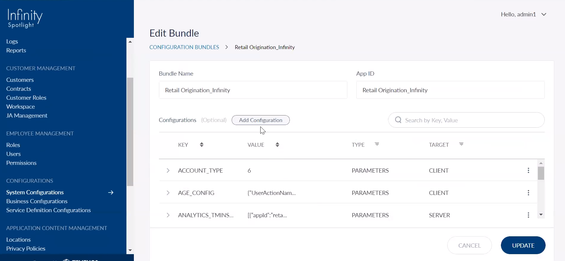 1. In the Spotlight app, navigate to System Configurations > Retail Origination_Infinity Bundle.