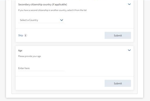 ["MobilePhoneNumberConsent", "BackupWithholding","EmploymentStatus","MonthlyGrossIncome","StartDate","Citizenship","IncomeDocument","ConfirmAddress","SecondaryCitizenshipCountry","Age"]