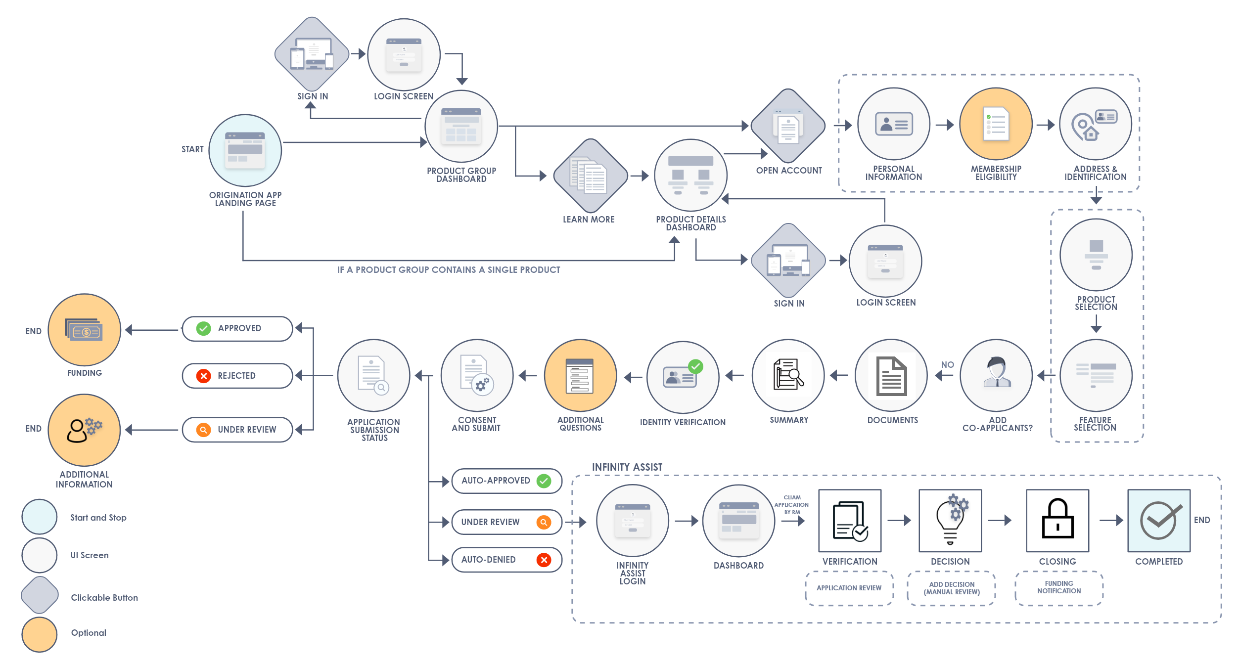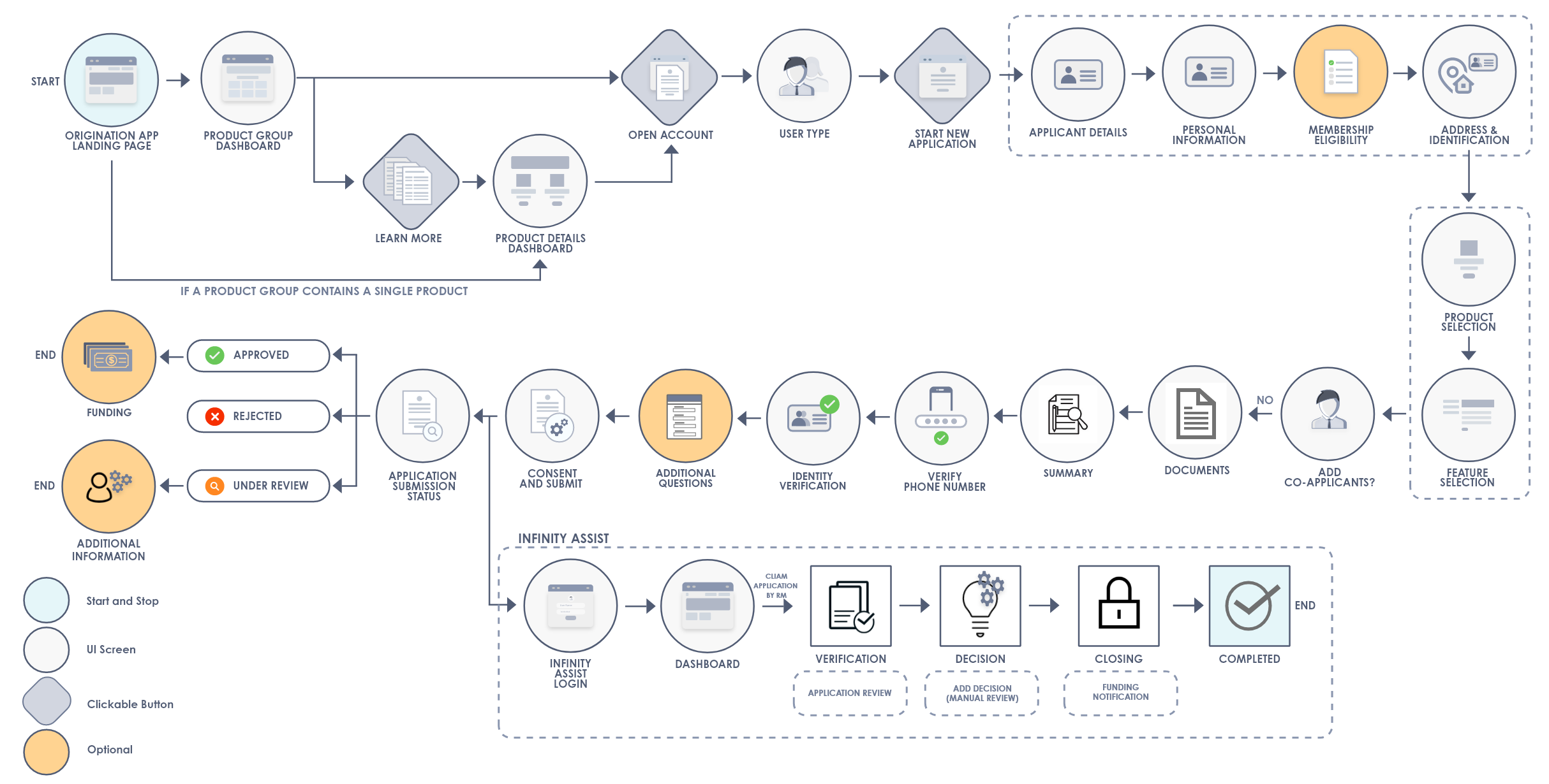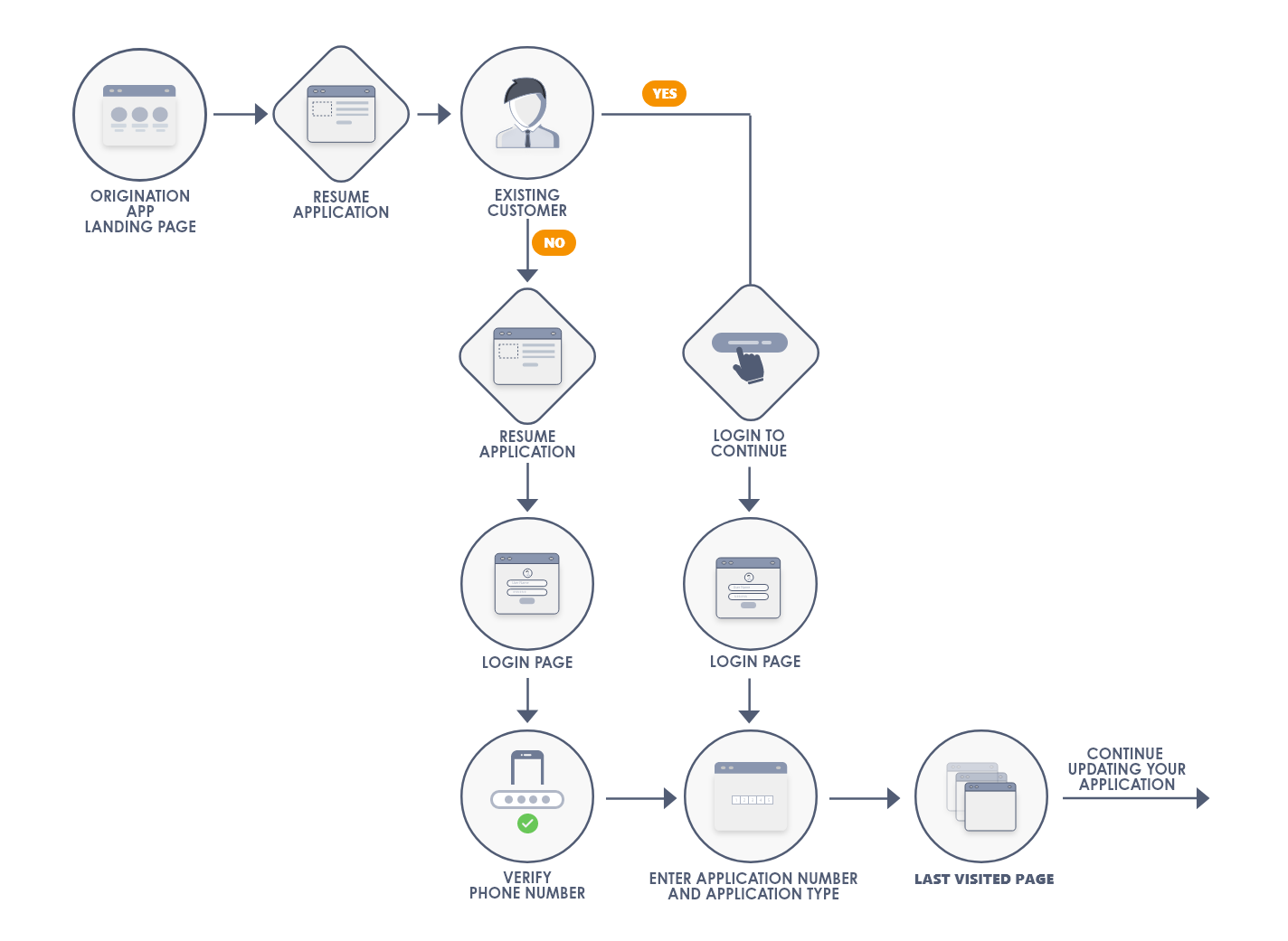 The following flow diagram illustrates the Origination app flow in this scenario. -