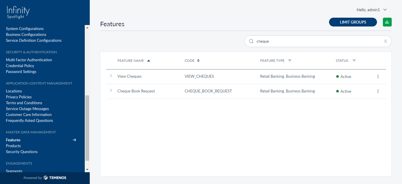 A few user permissions at the system level must be configured in Spotlight. The following configurations must be performed in Spotlight under Master Data Management to access the particular feature in OLB/MB.