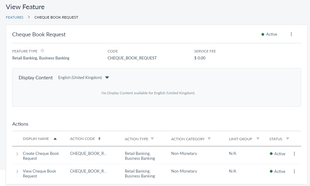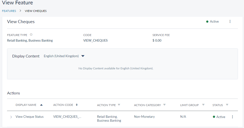 - View Cheques feature must be active to view and access the feature in OLB/MB. Once the View Cheques feature is active, the view cheque status action is enabled.