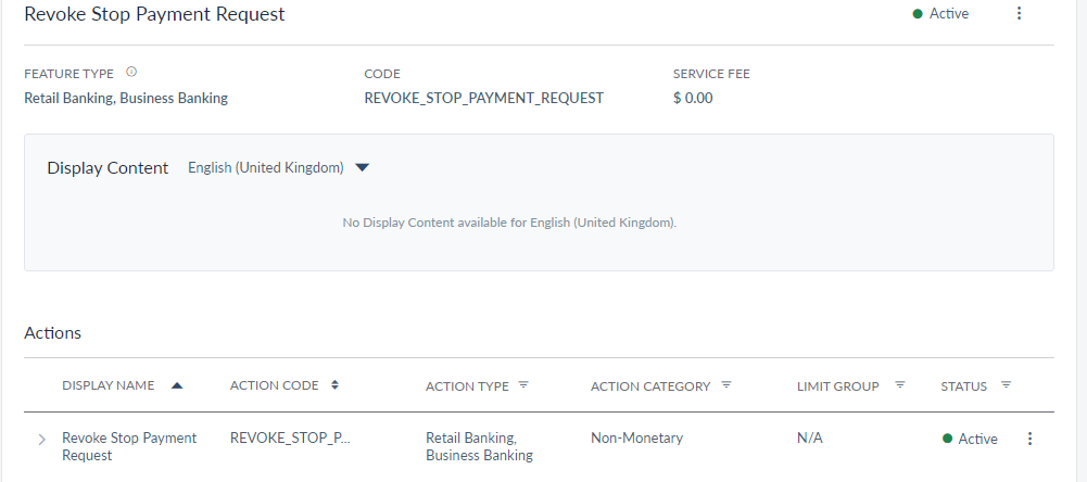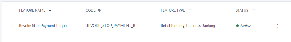 - Stop Payment Request feature must be active to create a stop payment request and view all the stop payment requests created for their account. Once the feature is active, the following actions are enabled: