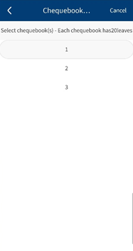 - Number of Chequebooks – You can select the number of required chequebooks from the list. The option is defaulted to 1. The number of books selected is displayed in the summary page.