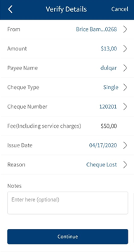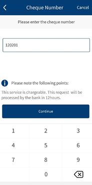 - Mobile Native: Hamburger menu > Accounts > Cheque Management
