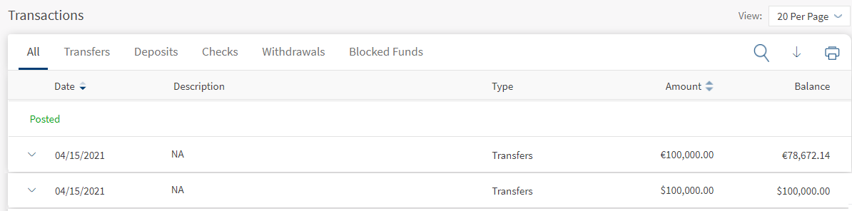 Use the feature to download the transaction summary of a selected account.