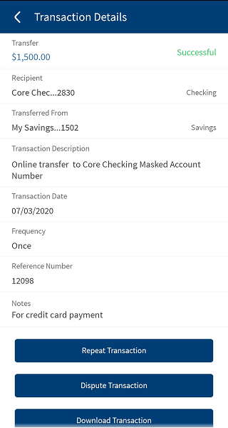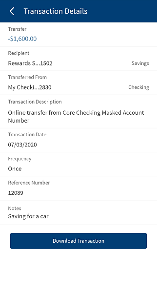 - Mobile Native: On the account summary screen, tap any row (transaction record) in Scheduled or Posted Transaction section view the transaction details respectively.
