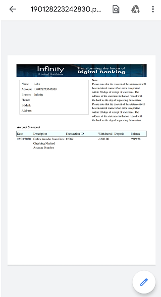 - Download Transaction. Tap the button to download the transaction. The transaction report is downloaded in PDF format, by default.