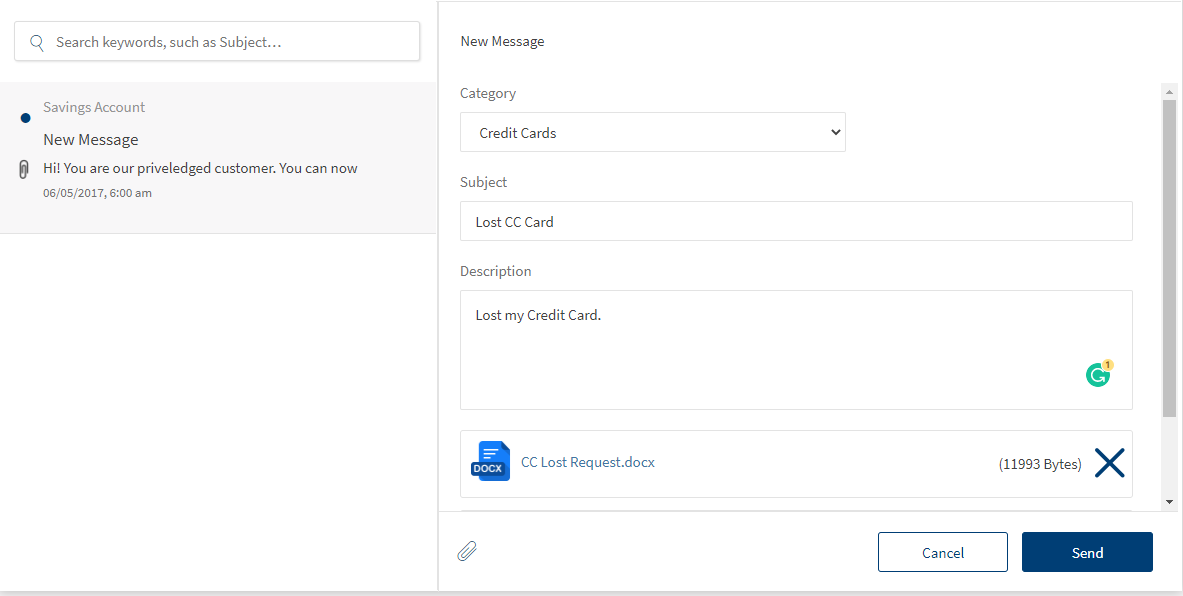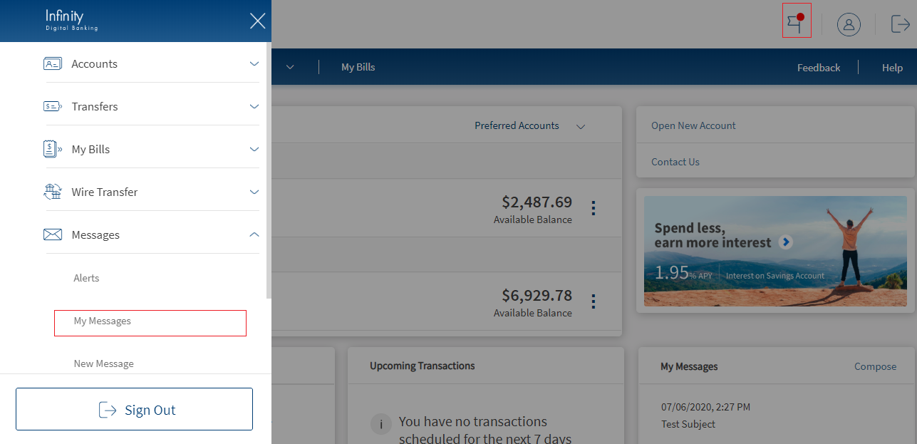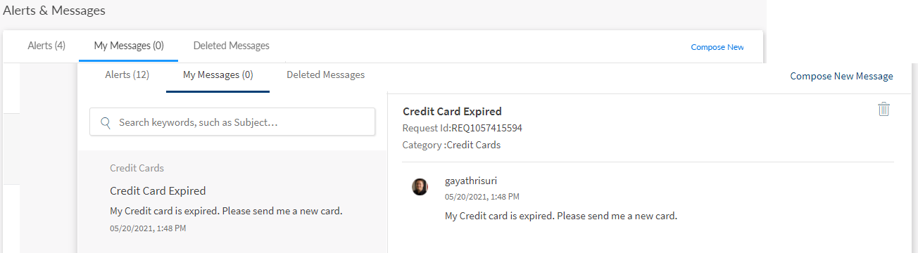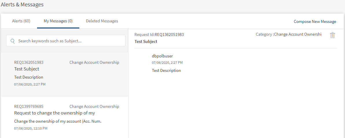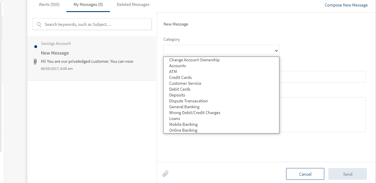 Use the feature to send and receive messages to and from your bank. You can use the digital banking applications as secure channels of communication with your bank. The Messaging module is a central place for creating, sending, viewing, and managing all the messages that you sent to or received from your bank.