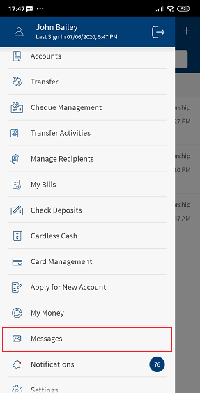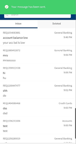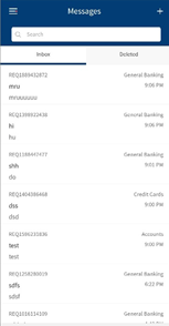 The app displays the list of message threads that you received from or sent to your bank, with the newest thread displayed first. Select a message thread from the list. The app displays the details of the entire message thread along with the message subject. The app also displays the number of messages within brackets that a thread contains beside the message subject.