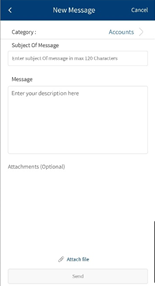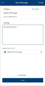 The app supports text, images, URLs, and provides you the capability to securely send and receive files as ../resources/images (applicable only for online banking). You can add the information in any of these formats while composing a message. Any ../resources/images that you receive in these messages are easily accessible and readable.