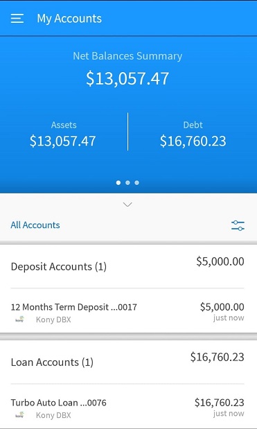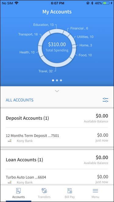 - Accounts. Tap to have an insight into the accounts held with the bank and view charts showing account trends and spending patterns; view the account summary, and recent and scheduled transactions in each account; view account details and account statements; view recent and scheduled transaction details; and search for transactions.