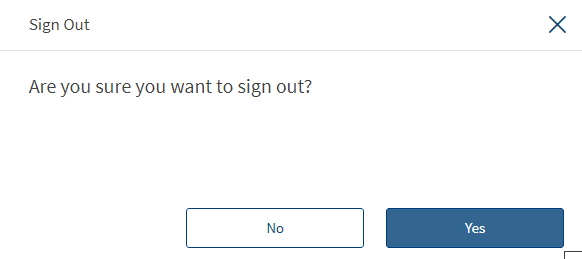 - Sign Out. Click to Sign out of the application. The app displays a message prompting you to confirm, and on confirmation, displays a screen to log on again. The username is retained but masked if you had selected the Remember Me checkbox during the earlier login.