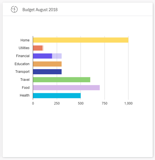 Use the feature to view the spending of the month in comparison with the planned budget in each category. By default, the current month comparison is displayed. The Budget bar chart displays the comparison details of the month selected in My Spending section.