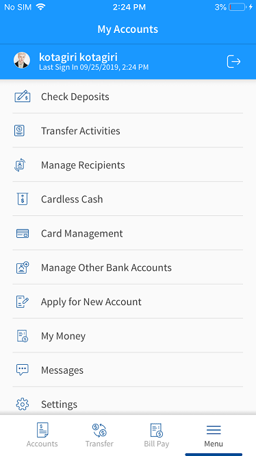 The app displays the From accountscreen in Make Transfer to select the account.