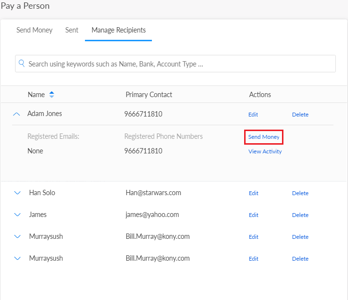 Use the feature to send money to the required recipients from the list.