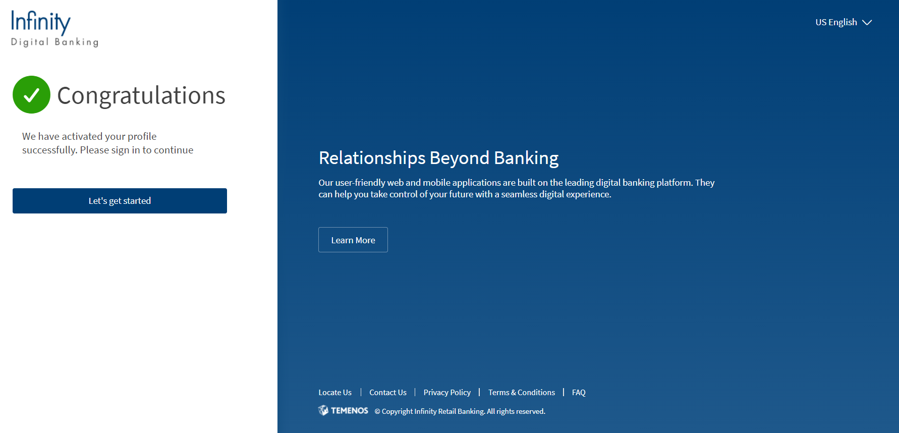 8. Click Let's get started to redirect to the Sign In screen.