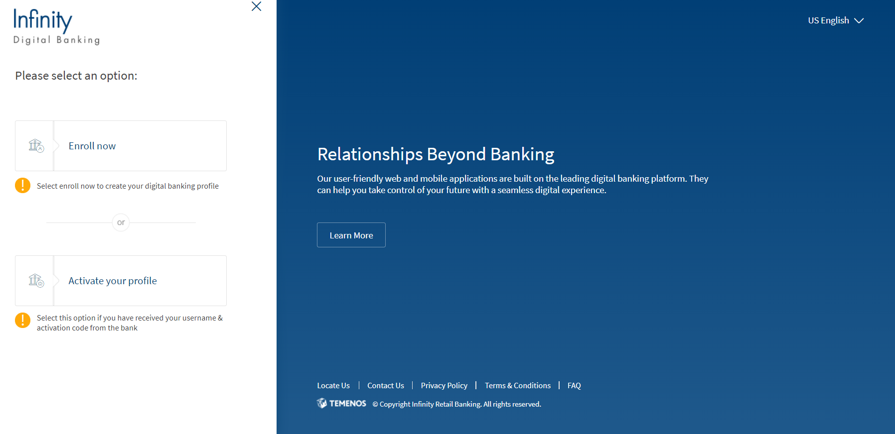 You can Self Enroll or Activate your digital banking profile to use the retail banking application (Desktop, Mobile, and Tablet).