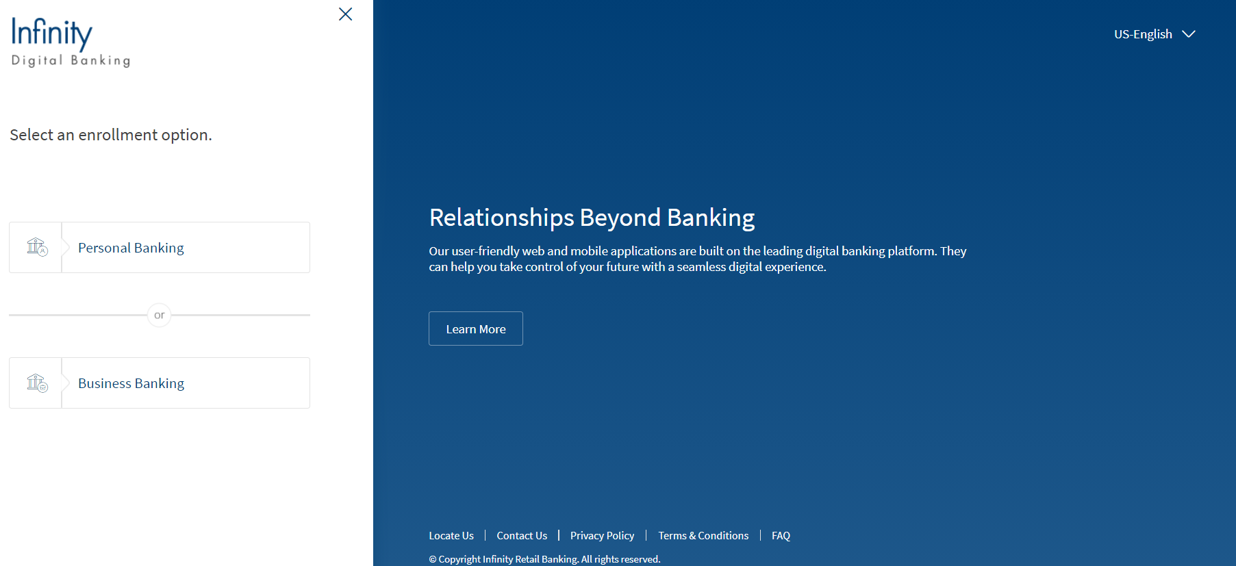 • Select Personal Banking if you want to enroll in the online banking application which suits a retail user for personal banking.