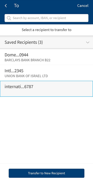 - Transfer to New Recipient. You can transfer the amount to a new recipient who is not in saved beneficiaries list.