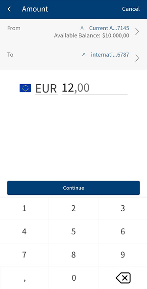 - For the same bank transfer if the 'From account' currency and 'To account' currency is different, both the currencies are displayed while performing a transfer. You can select the currency type from the displayed options.