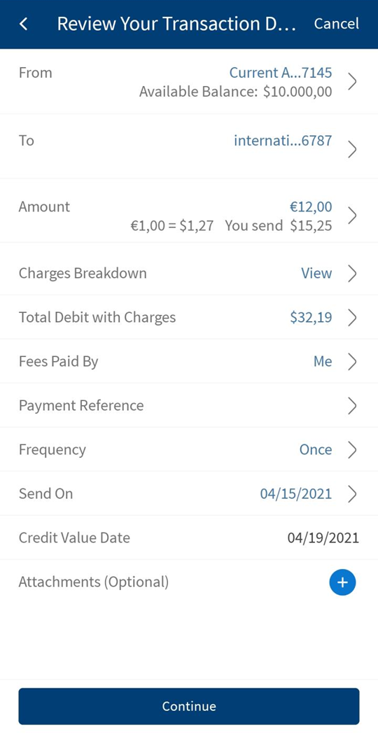 - Charges breakdown (with From account currency)