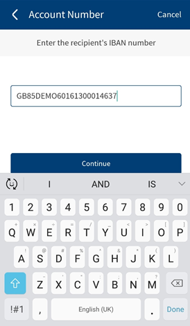 - Account number must be alphanumeric characters and you can enter up to 34 characters.