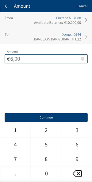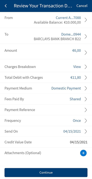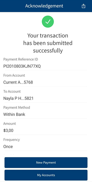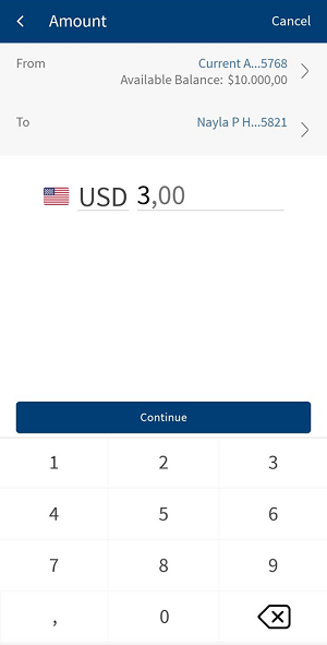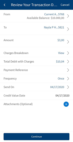 By default, the app selects the frequency as once and the current date. You can change the frequency and the date if the transfer is a scheduled or a recurring payment.