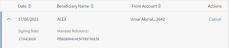 While the transaction is pending for approval, the Edit and Cancel action buttons will not be displayed. Once the signatory request is approved, then the transaction will be canceled.