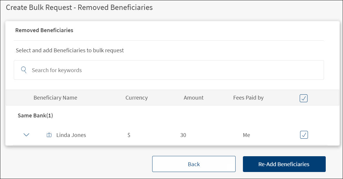 • Remove beneficiaries from bulk payment request.