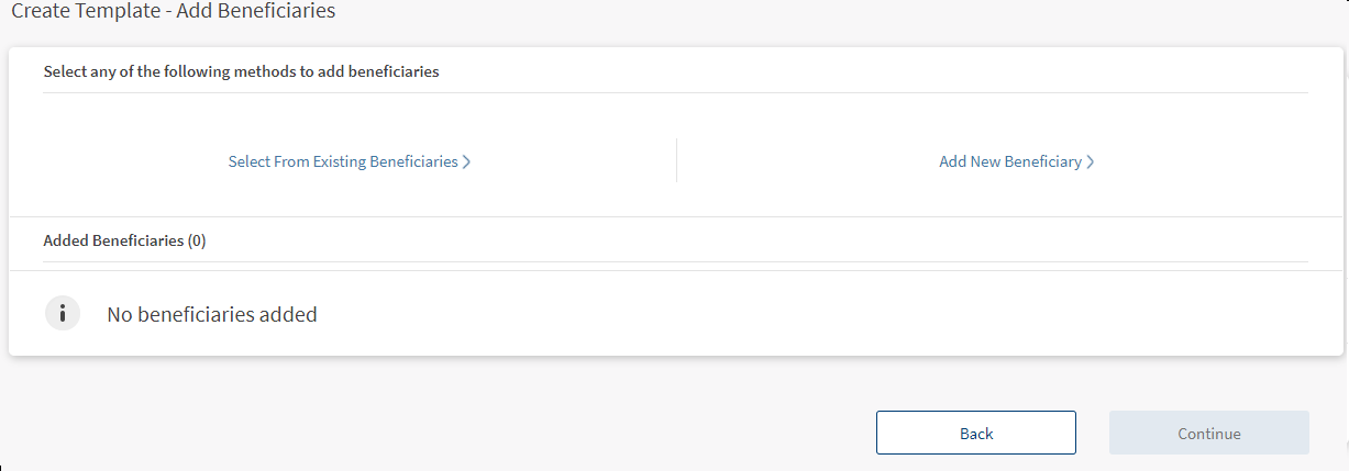 7. Click Continue to proceed to the add beneficiaries screen.