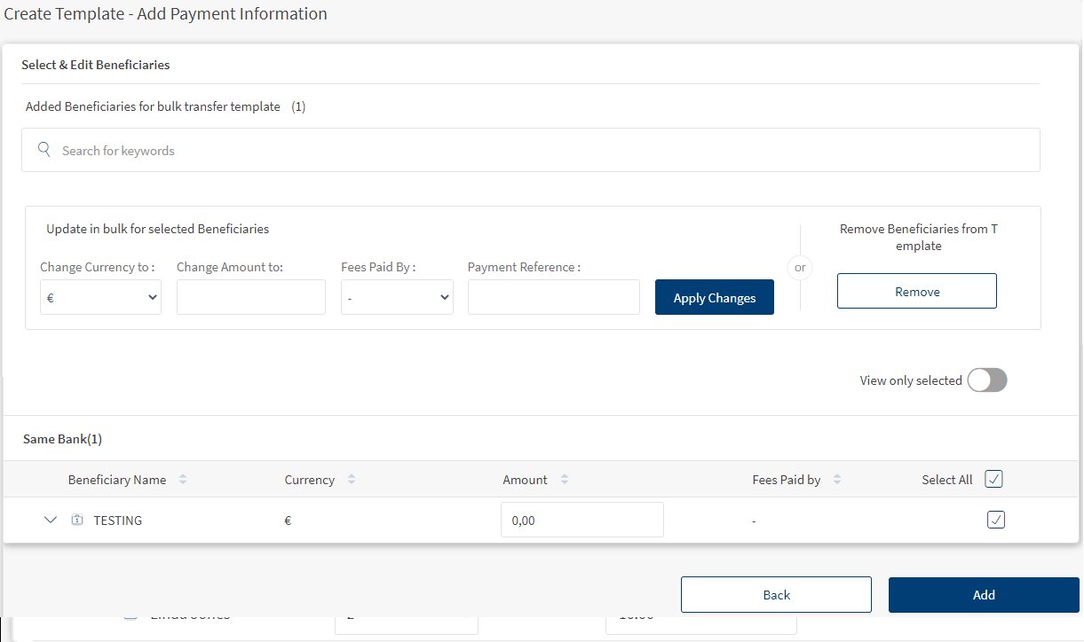 3. Click Add to add the selected beneficiaries to the template.
