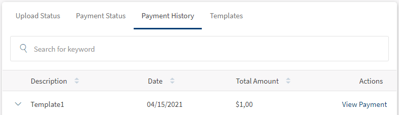 • Create bulk payment request via online templates instead of file upload.