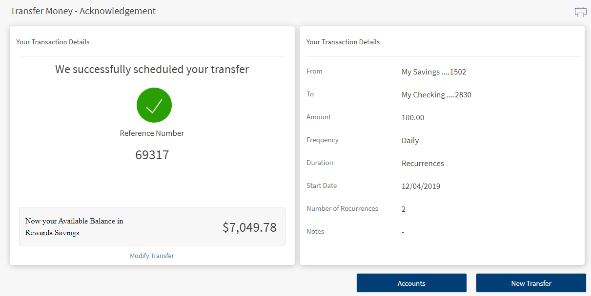- Modify Transfer (for recurring transfers)