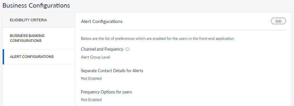 You can manage the alert configurations from here. The configurations which are set here will be applied to the Alerts module in the online banking application.