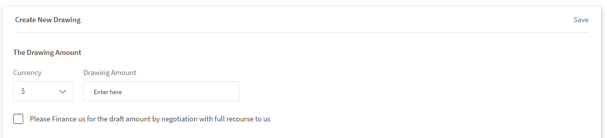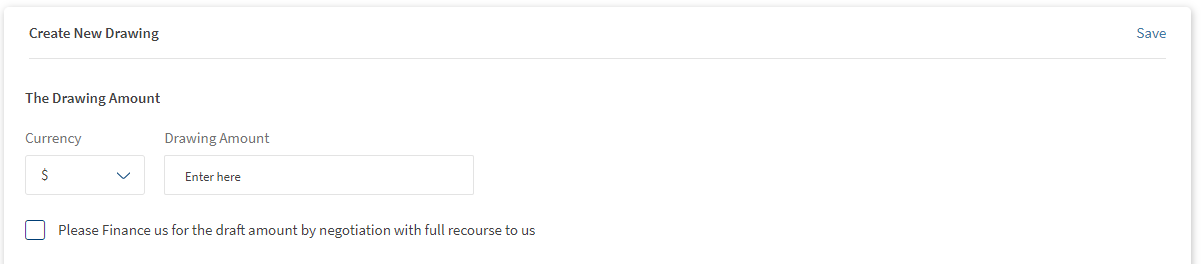 Depending on the requirement user can check the "Please Finance us for the draft amount by negotiation with full recourse to us". - Enter the Amount to be credited to.
