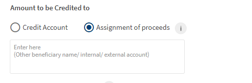 If the user selects Assignment of Proceeds, enter the Beneficiary name and other details in the text box.