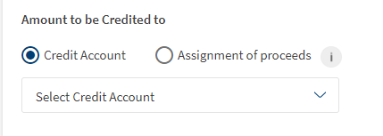 If the user selects Credit Account, then also select the Credit account number from drop-down list.