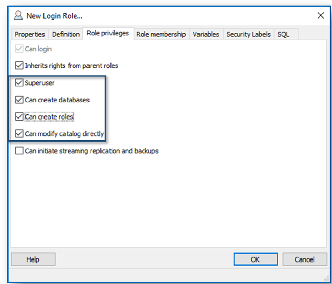 - User: CMSRole: Superuser (Can create databases and can create roles).