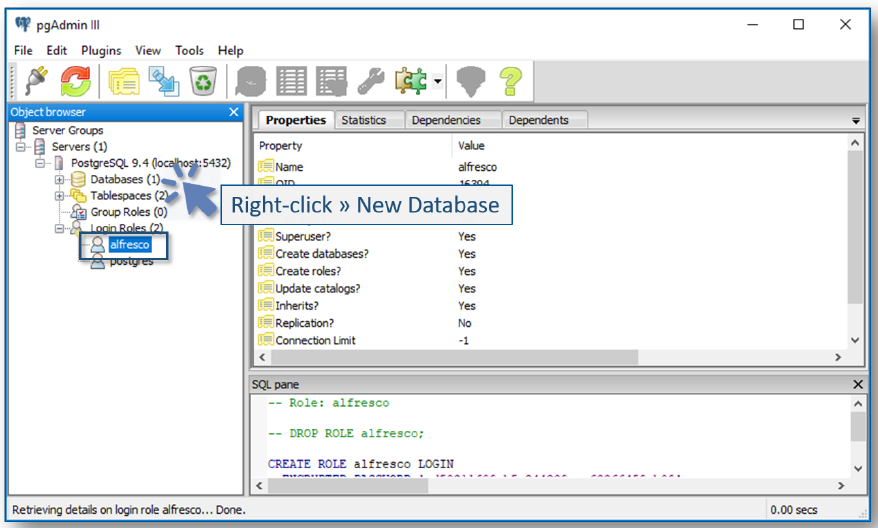 Add a Alfresco Database and User