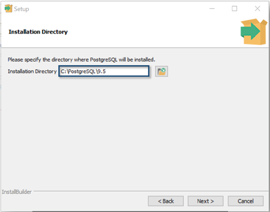 Remove “Program Files\” from Installation Directory Path. (This simply makes PostgreSQL easier to find).