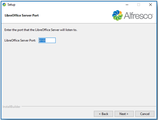 The LibreOffice Server Port screen allows you to enter the port number on which the LibreOffice server will listen.