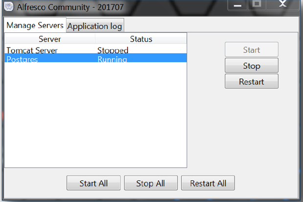 - Select Microsoft Windows Start button > All Programs > Alfresco Community > Alfresco Community Manager Tool.