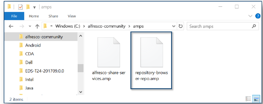 The following steps show you how to add an Alfresco Module Package (AMP). The AMP enables custom file type creation and specifically the use of Article Types and Placeholders within the Alfresco repository.