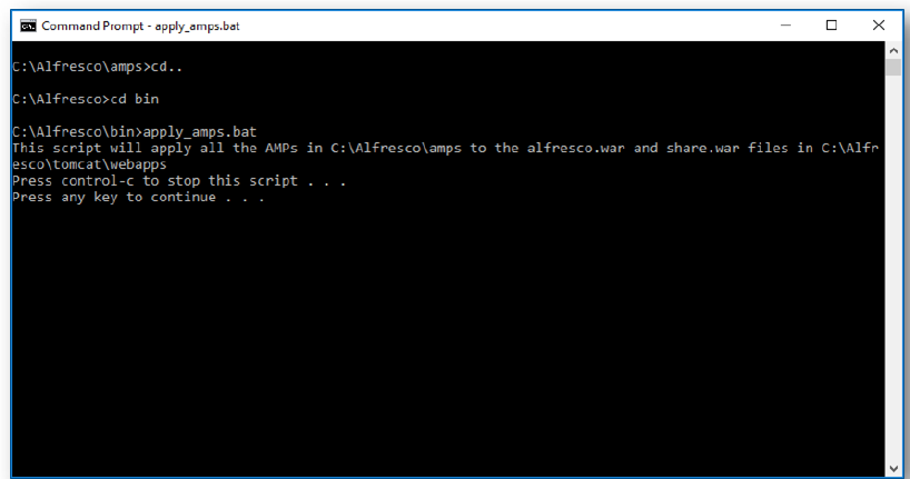 - Navigate to the Alfresco bin folder.